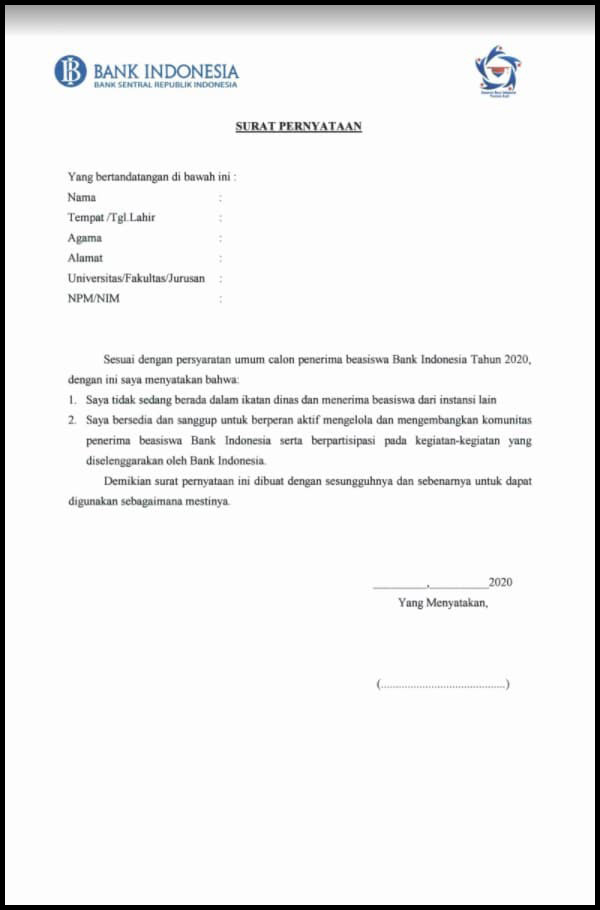 - Surat pernyataan bersedia aktif di komunitas mahasiswa penerima beasiswa