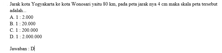 Setelah paham dengan penjelasan ringkasan materi di atas, selanjutnya kamu bisa menyimak langsung contoh soal serta jawaban soal skala kelas V. Silakan simak beberapa contoh soal skala untuk siswa sekolah dasar berikut.